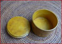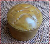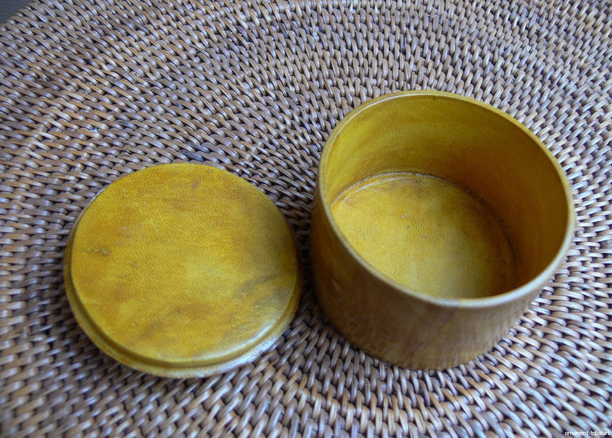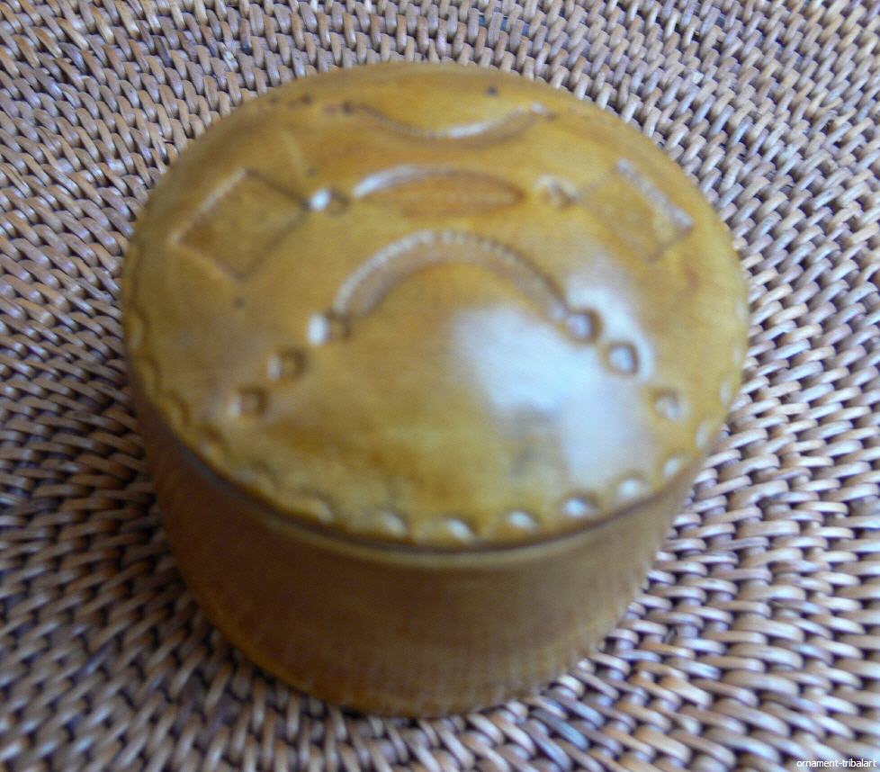 der Tuareg, Ziegenleder auf Holz, gefärbt und punziert, Höhe 5cm, Durchmesser 6,5cm