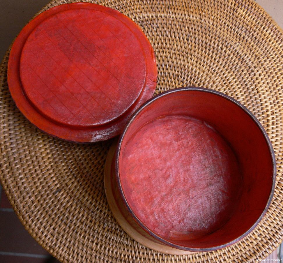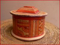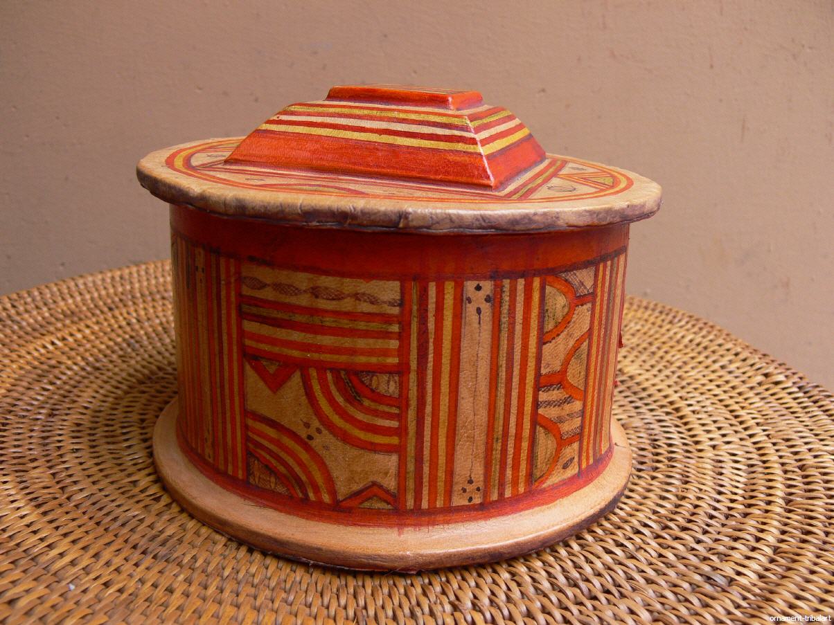 der Tuareg, Holz mit Ziegenleder innen u. außen bezogen, handbemalt, Höhe 10cm, Durchmesser 12,5cm