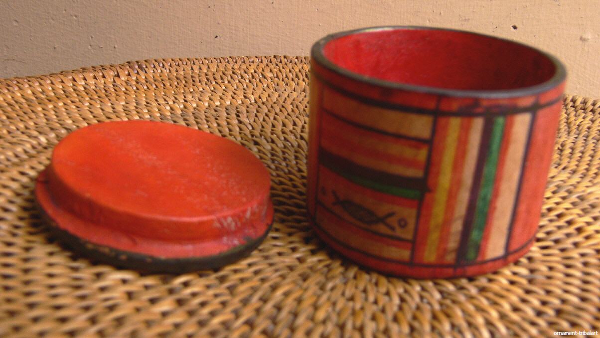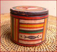 der Tuareg, Holz mit Ziegenleder innen u. außen bezogen, handbemalt, Höhe 4,4 cm, Durchmesser 5,2 cm