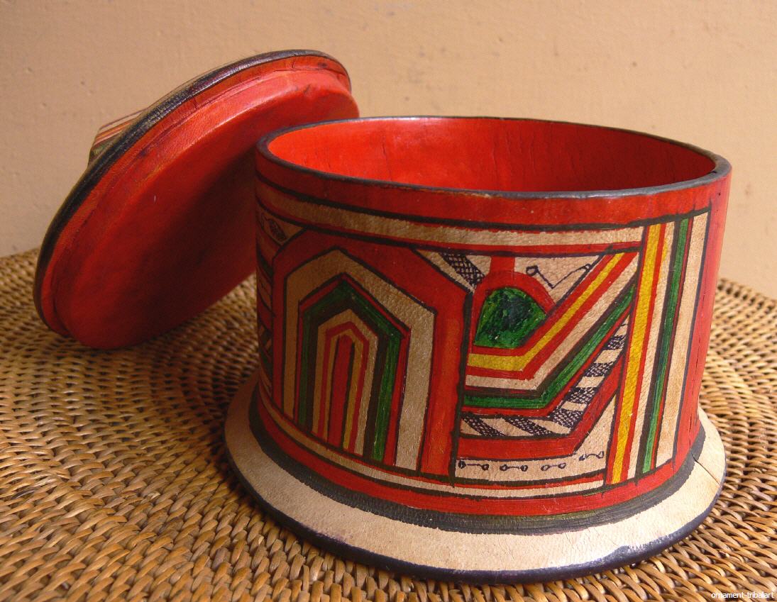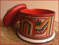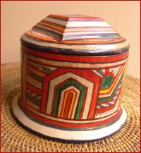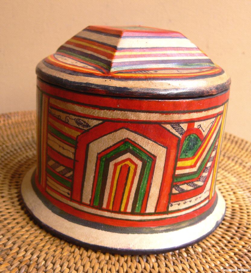 der Tuareg, Holz mit Ziegenleder innen u. außen bezogen, handbemalt, Höhe 10 cm, Durchmesser 12,5 cm