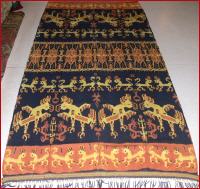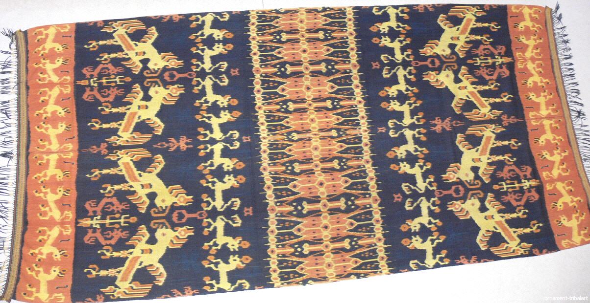 in Ikatwebtechnik (Abbindefärbung), Sumba , Naturfarbe , handgewebt, Schöne Abschlusswebborden, 2 teilig, Baumwolle,traditionelle Motive, 246 cm auf 120 cm