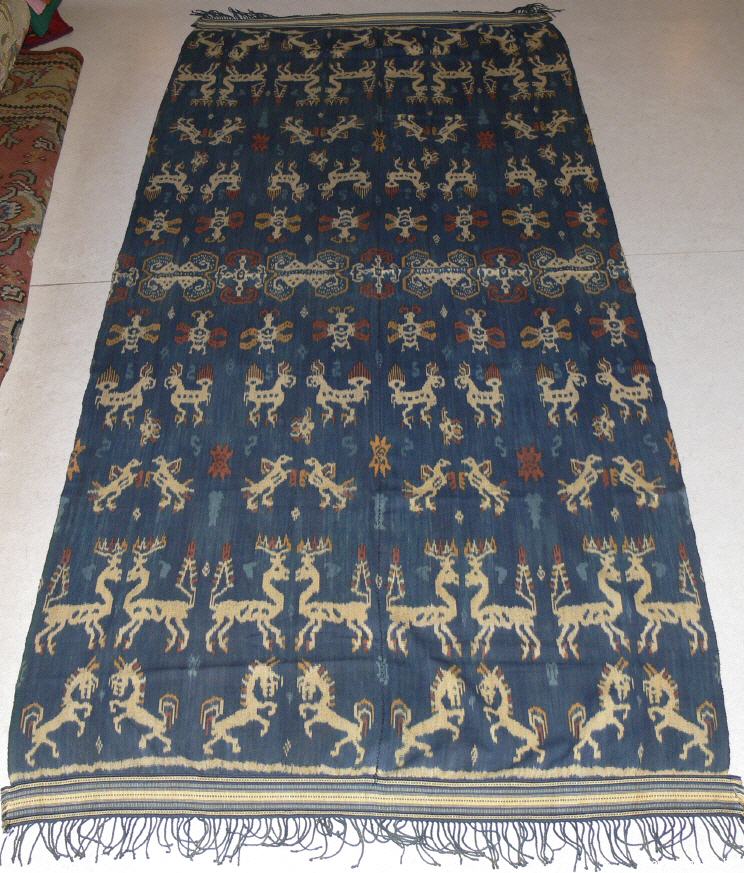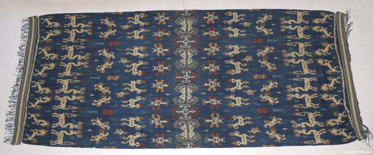 in Ikatwebtechnik (Abbindefärbung), Sumba , Naturfarbe , handgewebt, 2teilig , traditionelle Motive, schöne Abschlusswebborden, Baumwolle, 244 cm auf 104,5 cm