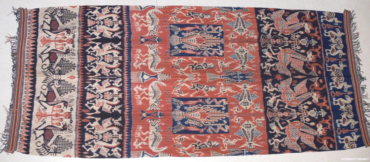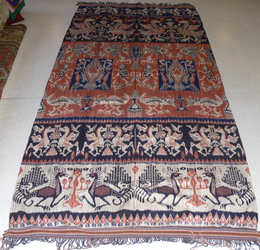in Ikatwebtechnik (Abbindefärbung), Sumba , Naturfarbe , traditionelle Motive, handgewebt, 2teilig , Baumwolle, schöne Abschlussborde, 256 cm auf 112 cm