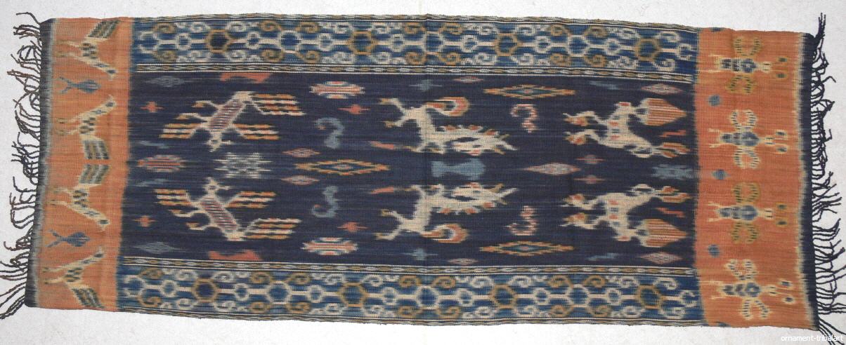 in Ikatwebtechnik (Abbindefärbung), Sumba , Naturfarbe , handgewebt, Baumwolle, 158 cm auf 86 cm
