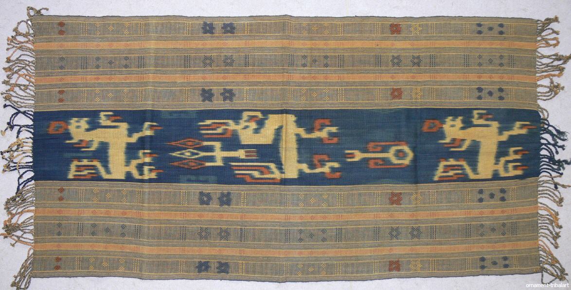 in Ikatfärbetechnik (Abbindefärbung), Naturfarben, Sumba, handgewebt, Baumwolle. 102 cm auf 53 cm