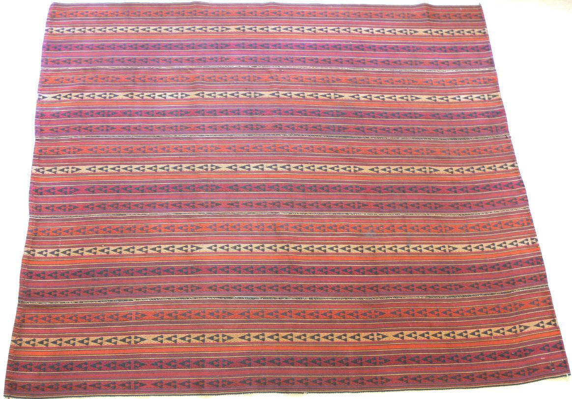 als Webdecke , Wolle , Gadschari , ( Musterbildende Kette ) , in Bahnen , 2 Webarten , alt , 170 cm auf 143 cm