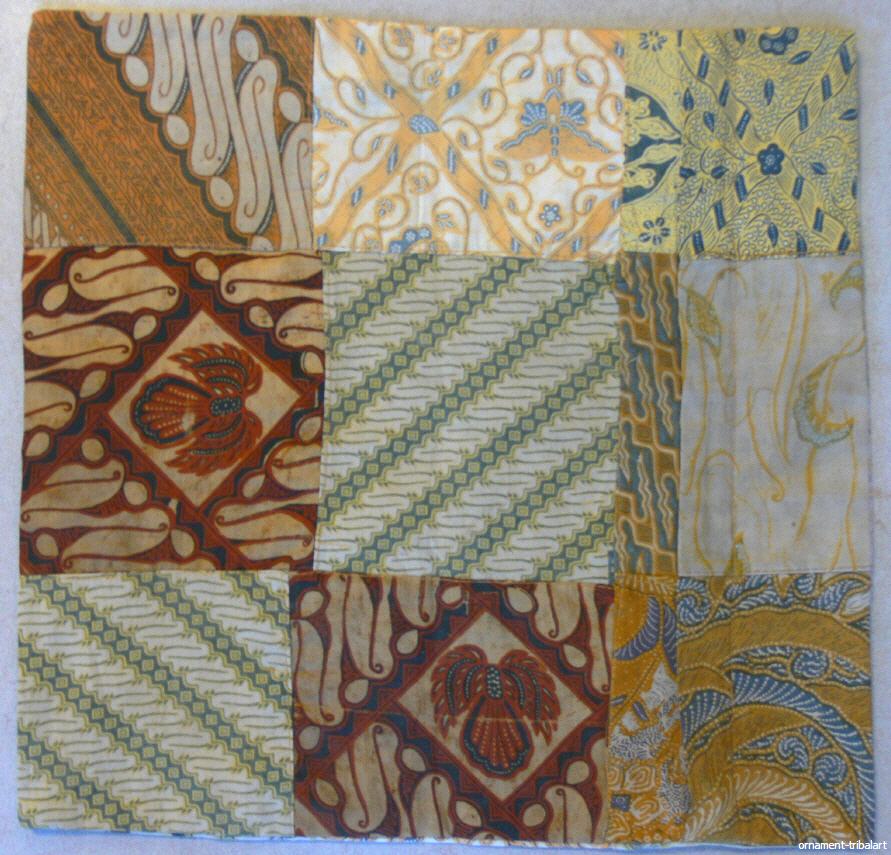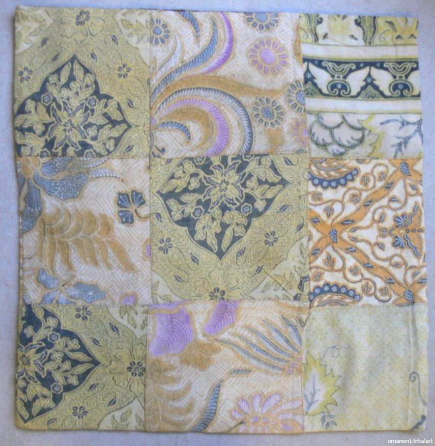 Patchworkkissen, beidseitig aus alten Batikstoffen zusammengenäht u. hinterfüttert,Reißverschluss, 39,5cm auf 38,5cm