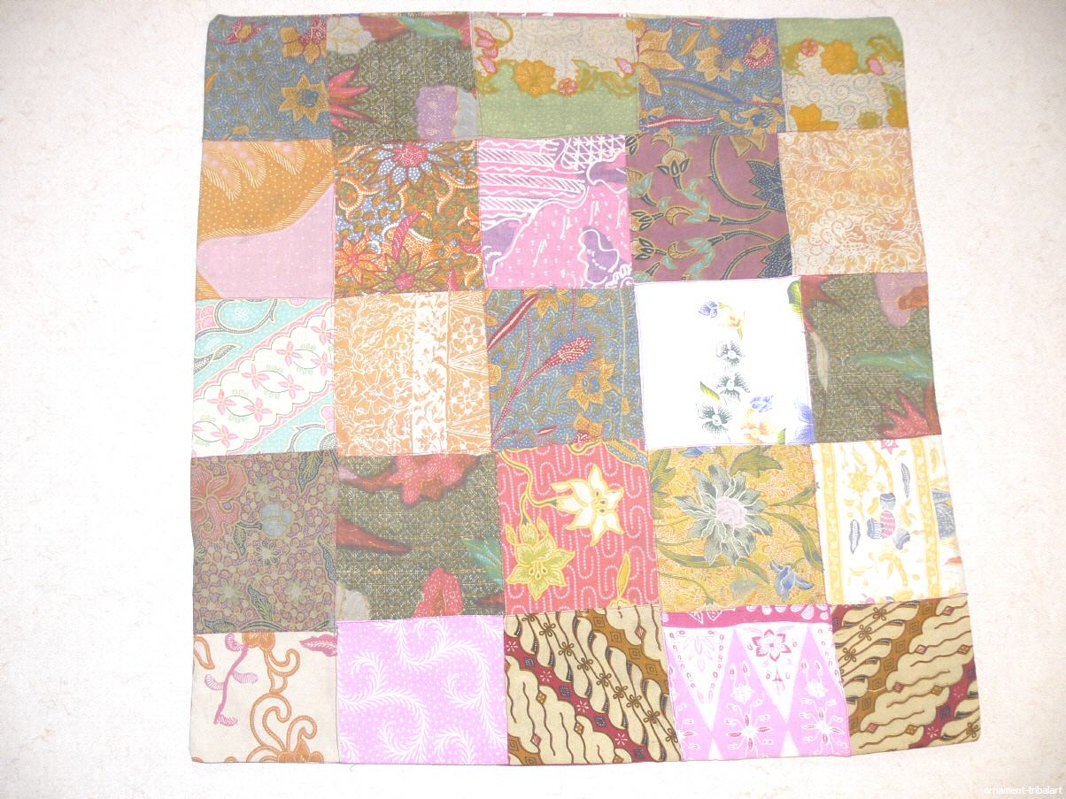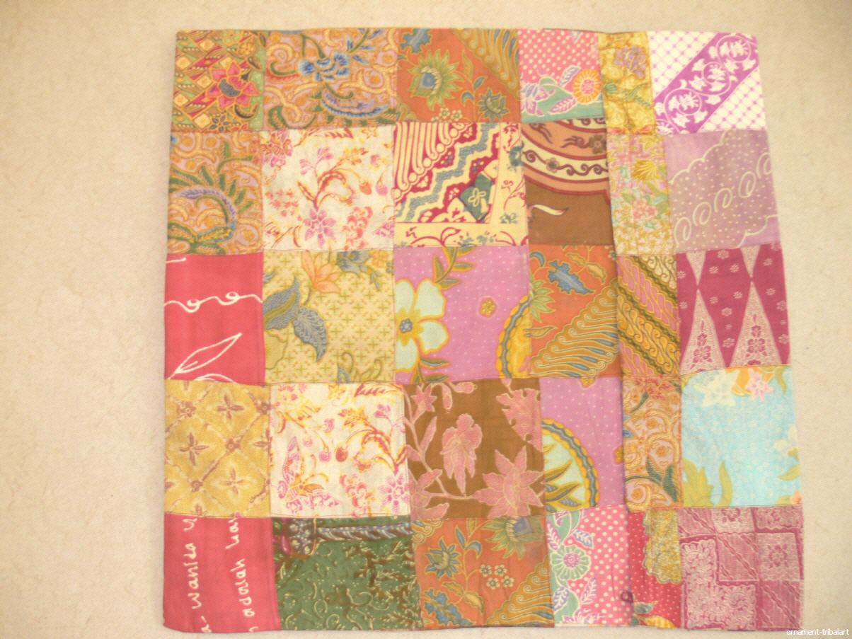 Patchworkkissen beidseitig aus alten Batikstoffen, beidseitig mit Innenstoff hinterlegt, mit Reißverschluß, 68cm auf 71cm
