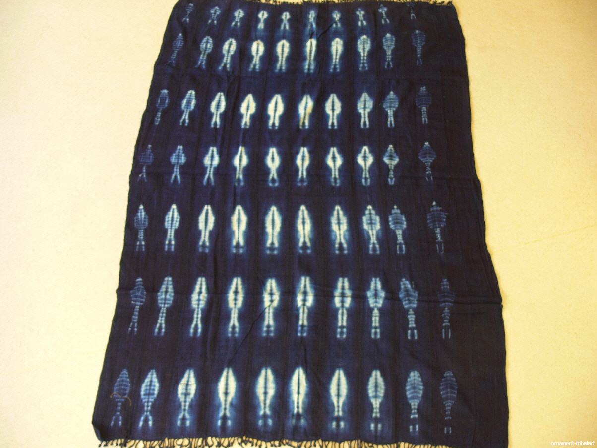 handgewebte Baumwollstreifen, Abbindefärbung mit Naturindigo, 111cm auf 162cm