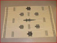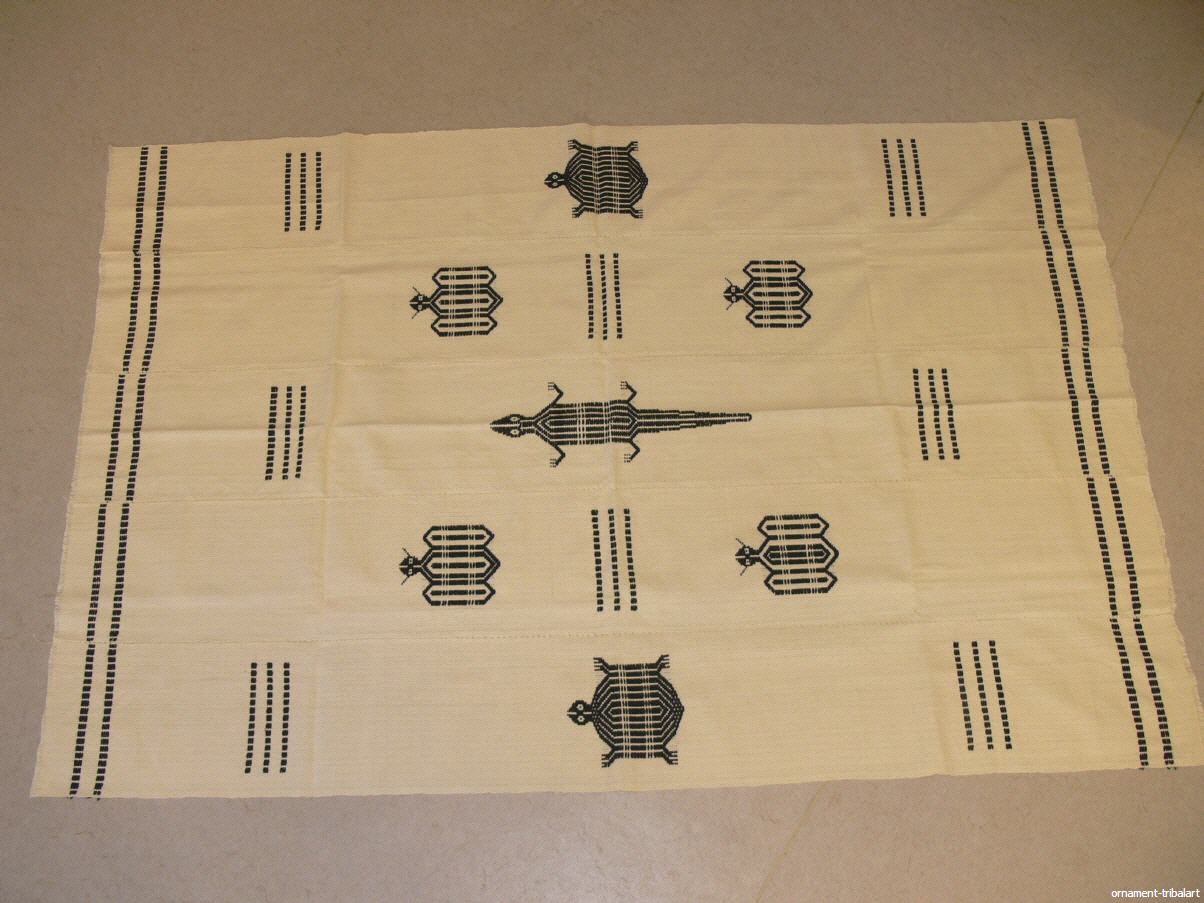 handgewebte Streifen aus ungebleichter Baumwolle zusammengenäht u. mit heiligen Tieren bestickt, 145cm auf 96,5cm