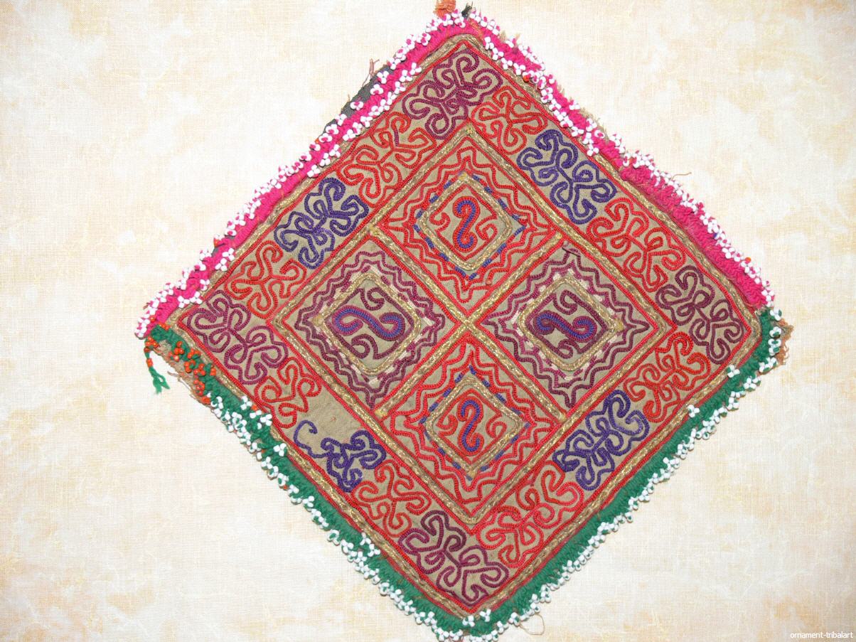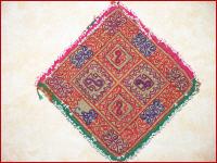 altes , besticktes Deckchen, Seidenstickarbeit auf Baumwolle mit Glasperlen umrandet, Ghazni