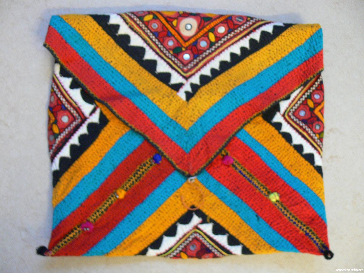 gesticktes Täschchen mit gesteppter Applikation und Spiegeln, original, Wüste Thar, 35cm auf 42cm