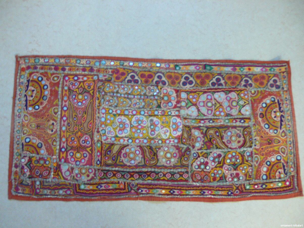 aus alten Stickarbeiten zusammengesetzt, mit vielen Spiegeln, Kuch, Gujarat, feiner Stich, 81cm auf 40 cm
