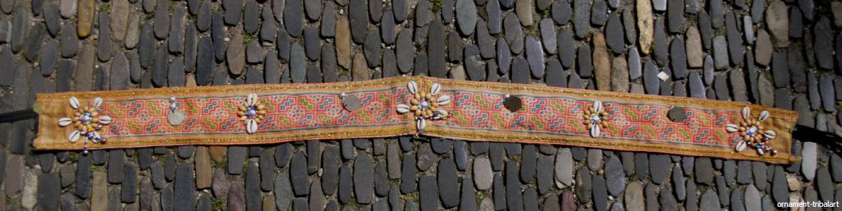 aus alter Stickarbeit, Kragen der Hmong, nachträglich mit Applikation versehen, Länge 108cm ohne Band, Breite 8,5cm
