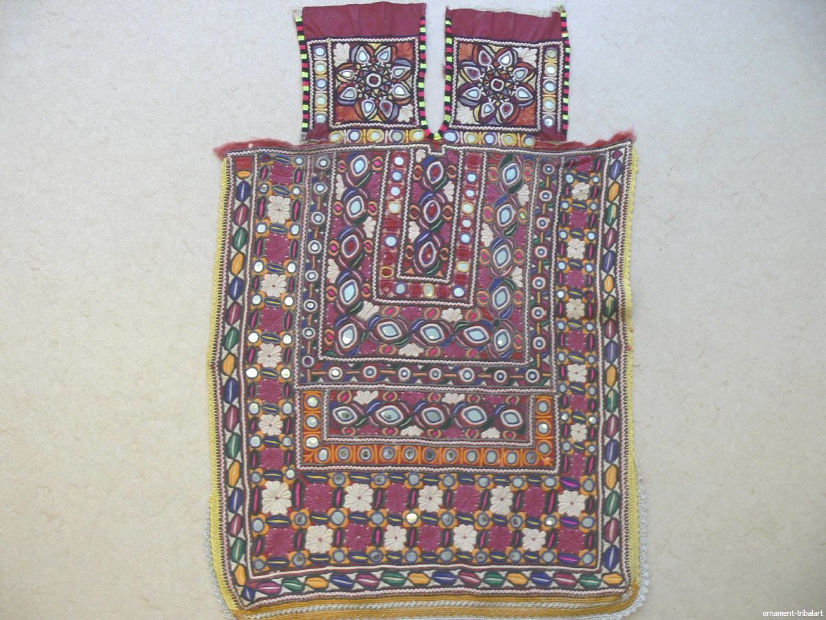 Frontpartie, war ansatzweise mit unbestickten kurzen Ärmeln versehen, Rücken war offen, 85cm auf 56cm, sehr aufwendige Stickarbeit, Rand umhägelt, alt Original, Sind Wüste Thar