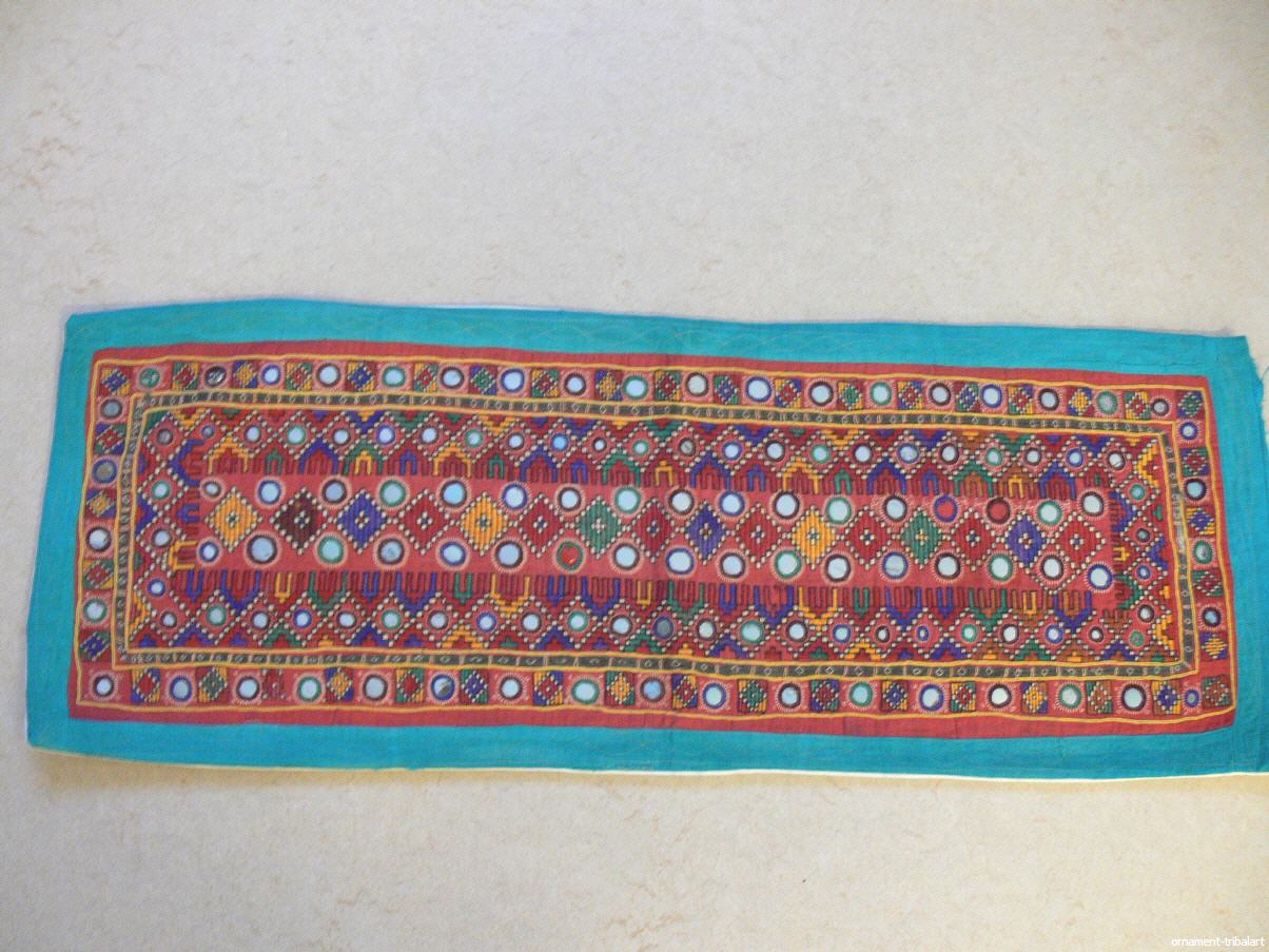 mit Seide besticktes , langes Kissen mit Spiegeln, Rückseite war unbestickt u. ist mit weißem Baumwollstoff erneuert worden, Frontpartie alt original, Sind Wüste Thar