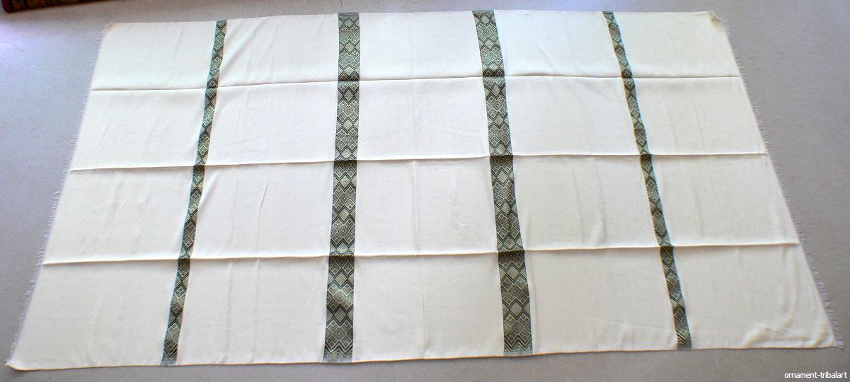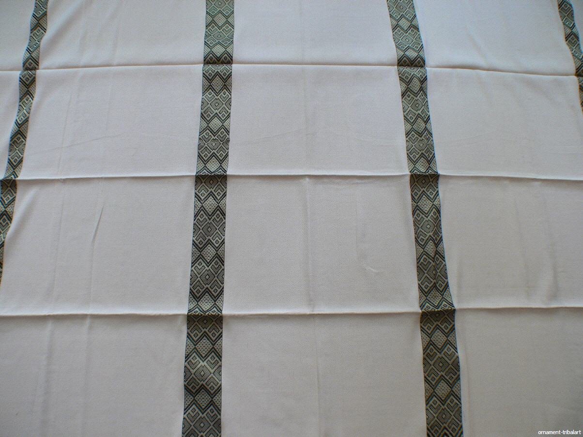 als Einzelbettdecke oder Tischdecke, Baumwolle ungebleicht, Musterstreifen mercerisierte BW, handgewebt, fester Stoff, farbecht, 255cm auf 128cm